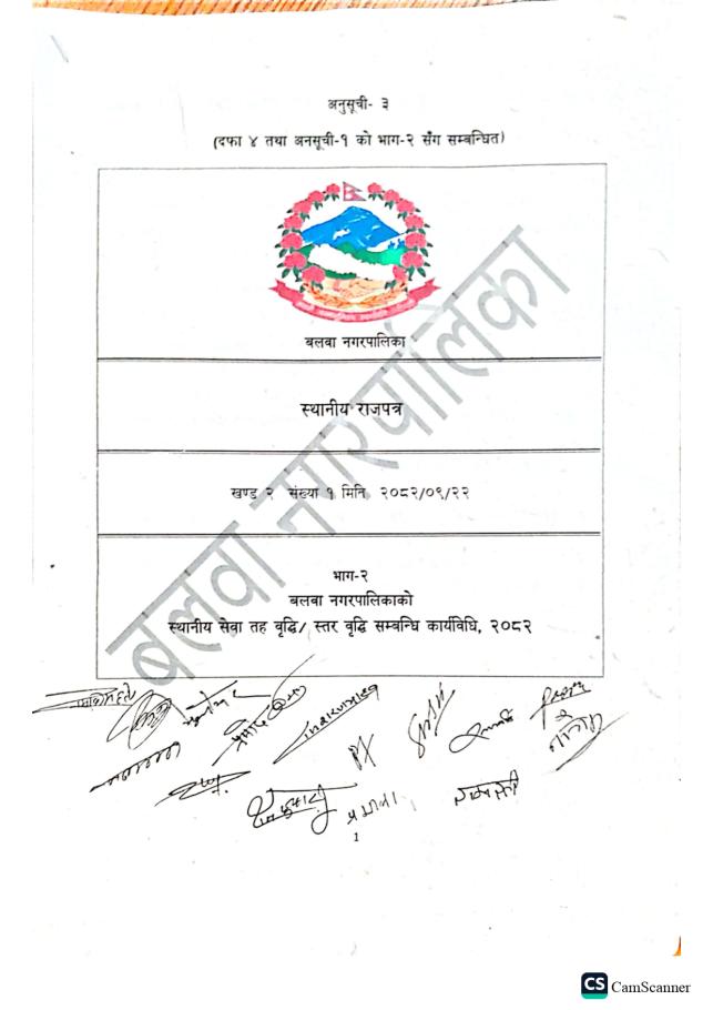 स्थानीय सेवा तह बृद्धि/स्तर वृद्धि सम्बन्धि कार्यविधि २०८२