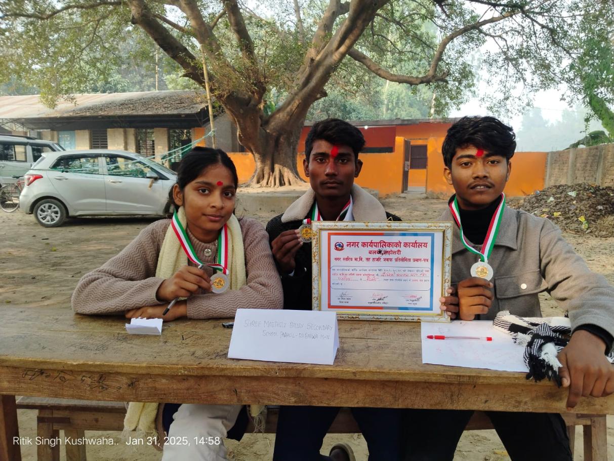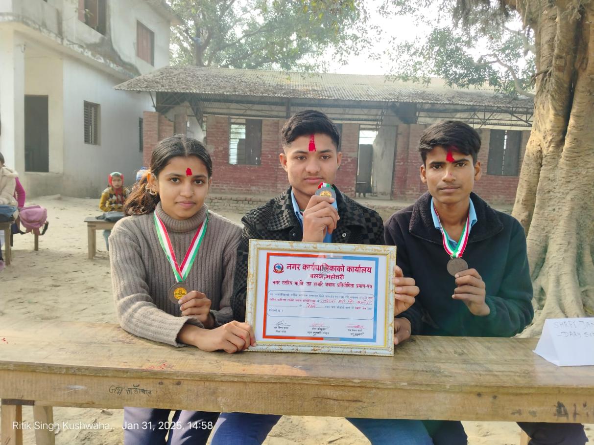 बलवा नगरपालिकाको बार्षिक कार्यक्रम अन्तर्गत मिति २०८१।११।१५ गते श्री माध्यमिक (0-१०) विद्यालय बदियामा संचालन गरिएको नगर स्तरिय नि. मा.वि.तह हाजिरी जवाफ प्रतियोगितामा