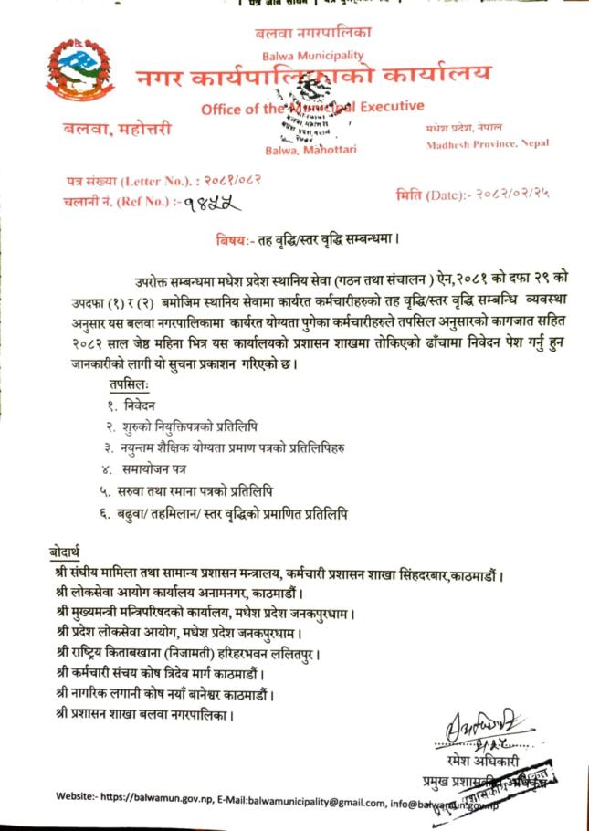 श्री सबै सामुदायिक विद्यालयहरु बलवा नगरपालिका (भौतिक अवस्थाको विवरण अध्यावधिक गर्ने सम्बन्धमा ।